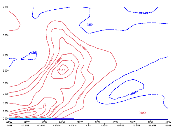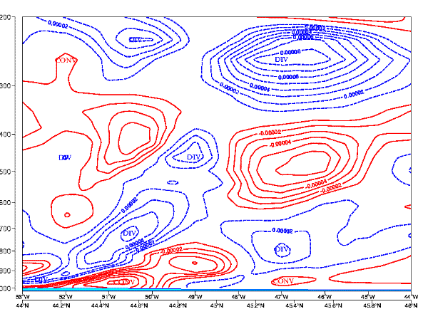 The PV tower associated with the hurricane central eye has begun to tilt westwards as Alex begins to become engaged in the westerly flow. The loss of the central eye is indicative of the engagement with a strong upper level flow as the cirrus sheilds is blown across the eye. The tilting effect is also a signal for the breaking down of the hurricanes lower level forcing.