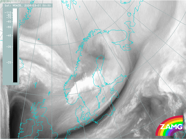Up to this point of time the first curl has developed at the western boundary of the cloud area in the center of the dry air above.