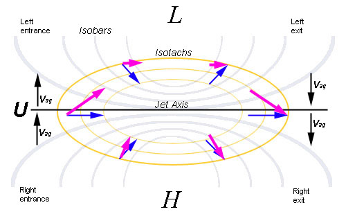 and a Jet, orientated from west to east, are pictured. The geostrophic