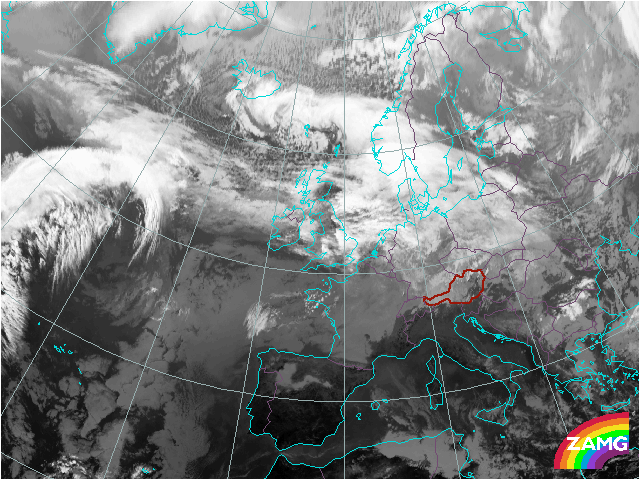 The relevant development in this case study has its origin in the South of Greenland. Main features in the first IR image are two low pressure systems. One can be found to the north of Great Britain and is characterized by pronounced cloudiness on both fronts. The second system is situated in the South of Greenland.