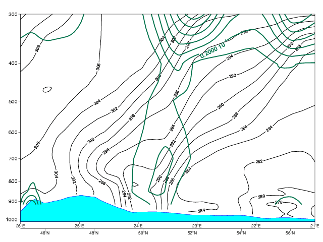 Potential Vorticity A strong PV anomaly clearly coincides with the dry slot between the cloud head and the cloud band. The isolines of PV=1 reach down to the surface. The influence of this PV maximum on the entire development is evident.