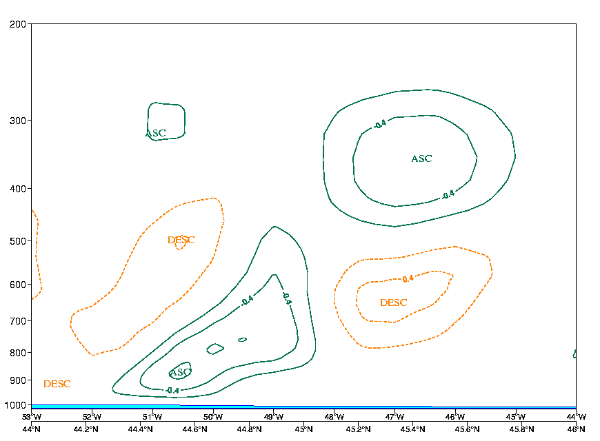 The PV tower associated with the hurricane central eye has begun to tilt westwards as Alex begins to become engaged in the westerly flow. The loss of the central eye is indicative of the engagement with a strong upper level flow as the cirrus sheilds is blown across the eye. The tilting effect is also a signal for the breaking down of the hurricanes lower level forcing.