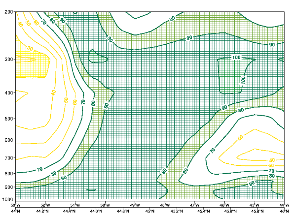 Typically around the centre of the hurricane there is high humidity values extending throughout the troposphere.