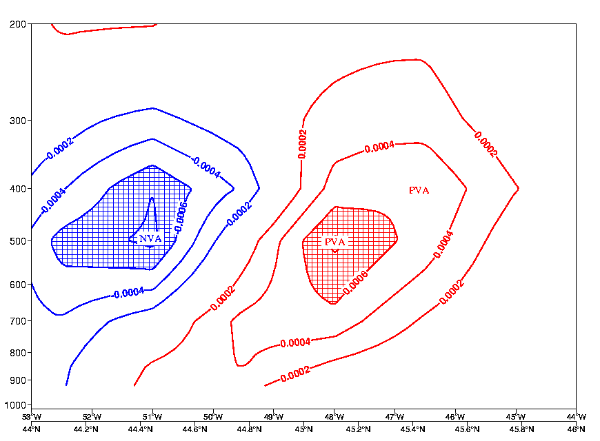 PVA remains to the east of the core and is coincident with large scale warm advection leading to continuing pressure falls ahead of the hurricane. To the west and rear of the development NVA is present. this is coinciding with the axis of a short wave trough.