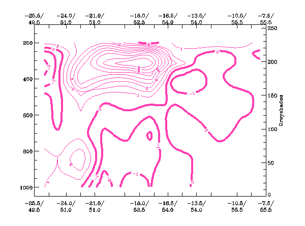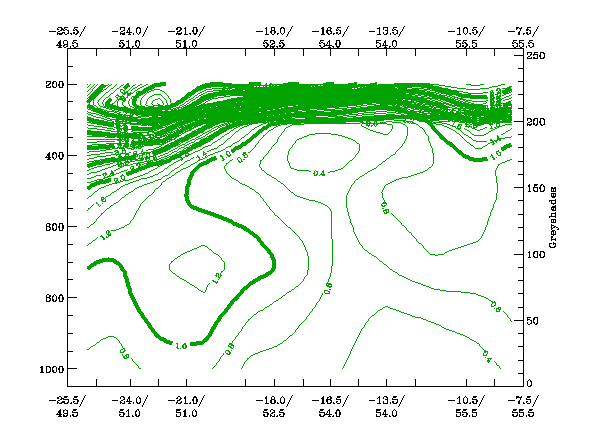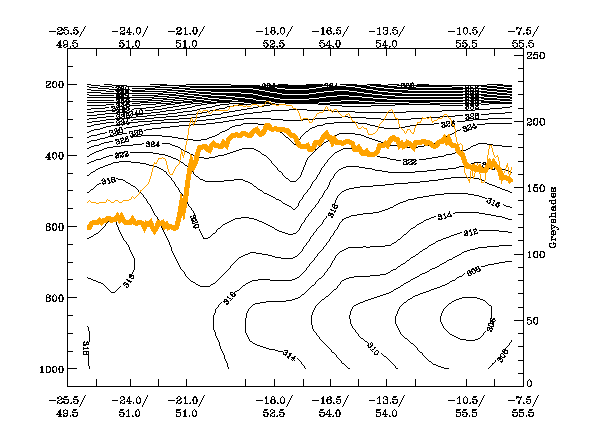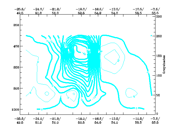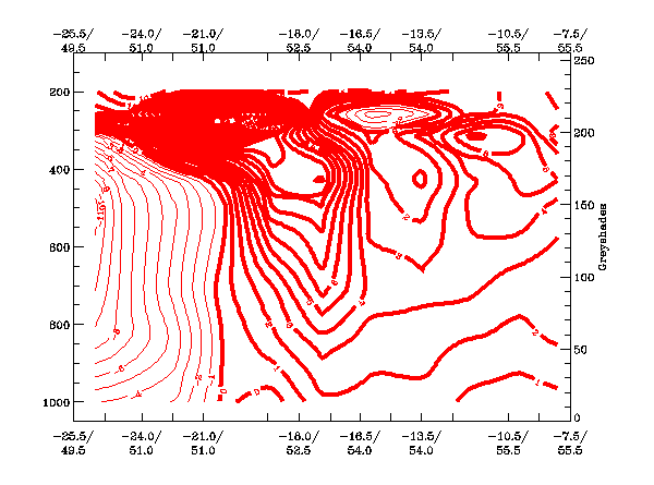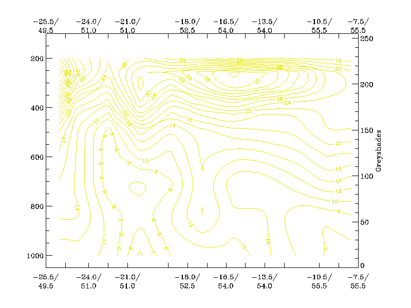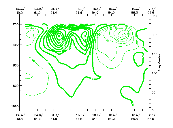 The high values in the IR image are clearly reflected in the pixel values in this cross section. The values of WV are now lower than the IR values which now indicates that there is drier stratospheric air has now become to be engaged and drawn into the system.