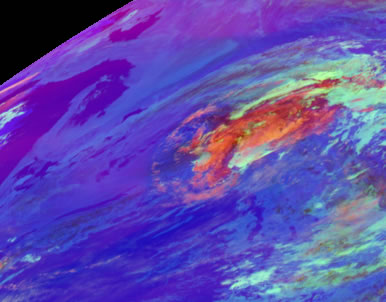 It is known that the internal structure of a hurricane is highly convective (view animation). The convective RGB shows up all convection, with no discrimination between the cells.