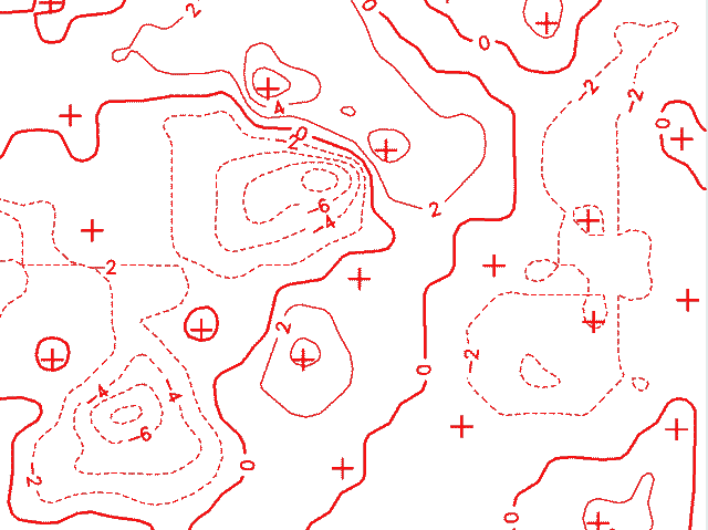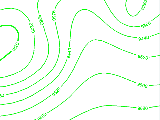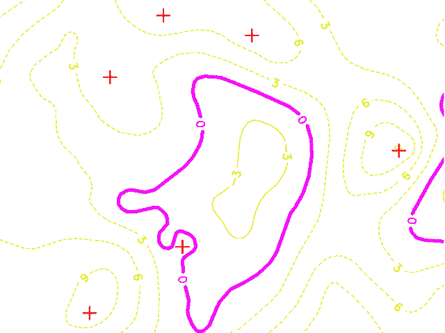 The Showalter index gives a good indication where the atmosphere is unstable and where convective development may be expected. Showalter indices between 1 and 4 give the indication that thunderstorm are possible but that a trigger is still needed. From this threshold downward the chance on thunderstorms increases. Values under –3 are associated to very heavy thunderstorms. In this set of images the threshold of Showalter Index = 0 is pictured using the pink line. This allows an easy discrimination of the potential convective areas. Such an area can be seen here stretched over the Eastern Europe. Locally we see values of below -3 where convection has already started (Carpathian Mountains).