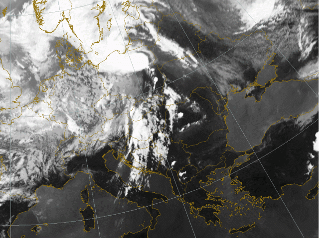 Also in this IR10.8 image without any enhancements the thunderclouds can be seen over Poland and more to the south over Hungary and Slovakia. Bot of these MCS systems will wander of to Ukrain.