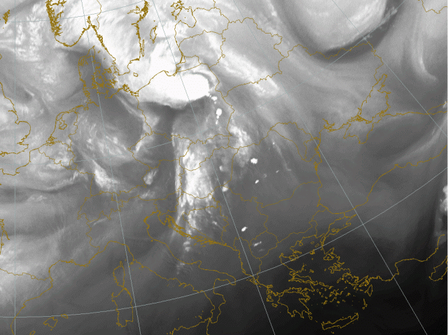 A depression is located over the northern part of Central Europe. Further south over the Balkan area some convective activity is observed. A closer look reveals over the Carpathian Mountains the onset to more convection. Over Ukrain the flow is dominantly cyclonic. More to the south a ridge of high pressure is observed.