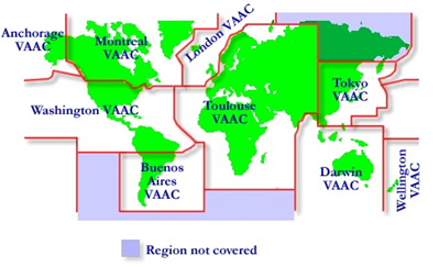 Based on the seriousness of volcanic ash hazard the ICAO (International Civil Aviation Organization) established the International Airways Volcano Watch Organization (IAVW) which includes 9 different Volcanic Ash Advisory Centers.