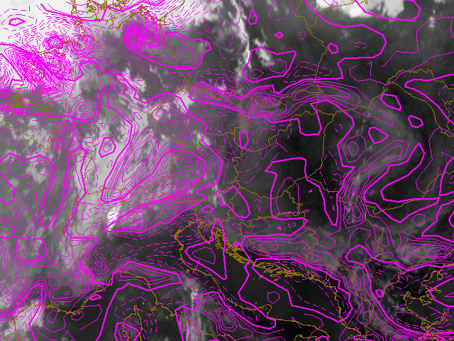 By this time the convection is about to start. In the model fields a wide line of converging movements is seen stretching from Northern Italy over Austria, the Czech Republic and further north in Poland.