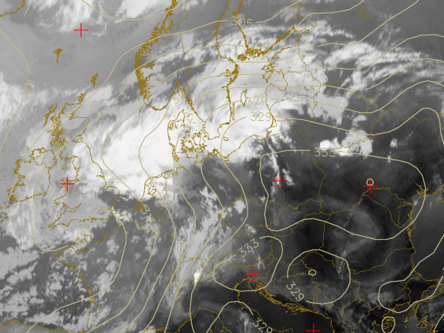 A pronounced Theta-E maximum is found over Poland. Its instability is reflected in IR10.8 by some Cbs. Further south a secondary maximum gives indication of an unstable atmosphere over Croatia. (Un)fortunately this is not seen in IR10.8, maybe because of a strong capped inversion that hampers convective development.