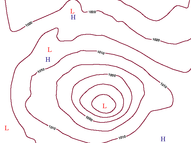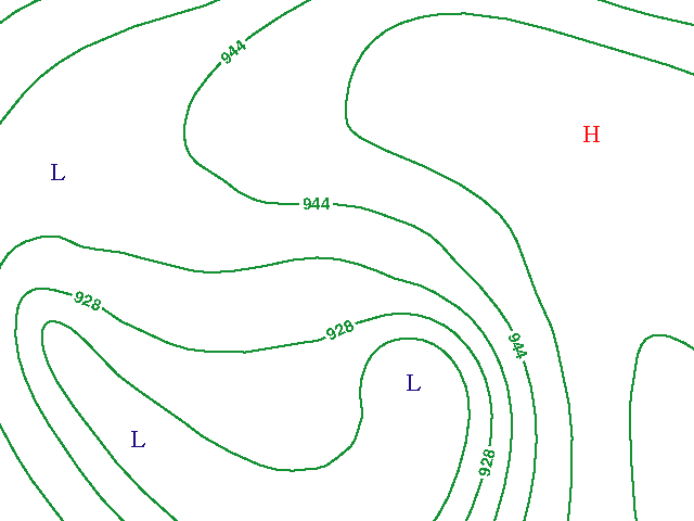 The high gradient across the cold front marks the location of the cold front at the lower troposphere. A local maximum of Thetae (52 K and above) is located near the occlusion point over the western parts of Lithuania and over the southern Baltic. This seccluded pocket of warm and moist air is rather persistent during the whole process.
