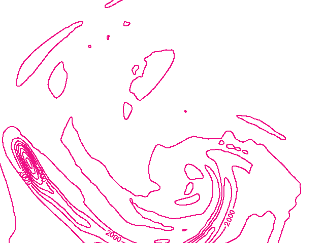 Geopotential height at 300 Shows the upper level low centre over NW part of Belarussia, with an associated upper level trough still detectable and extending from NW part of Belarussia towards NE.