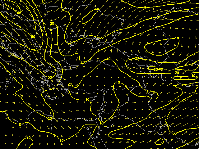 Isotach field at 300 hPa - 26th May 2006, 12 UTC