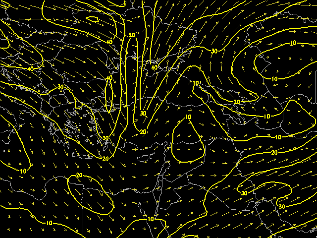 Isotach field at 300 hPa - 27th May 2006, 00 UTC