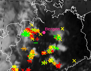 We find a significant right turn of wind direction from surface to about 3 km above ground that is equivalent to warm air advection. Measurements above 3 km exhibit only weak temperature advection. This implies an increasing vertical temperature gradient during the next few hours. Because we observe already potential instabillity (KO-index was -2) it is likely that the potential instability will increase, too. If upward motion is superimposed, thunderstorms are likely.