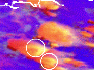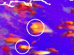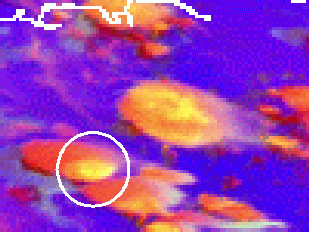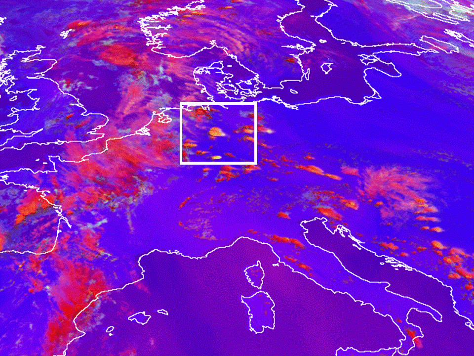 According to these rules, in this sub-chapter "candidates" for intense convection will be identified and monitored in the succeeding images. We will mainly concentrate to the region indicated by the white rectangular.