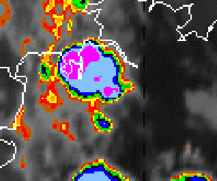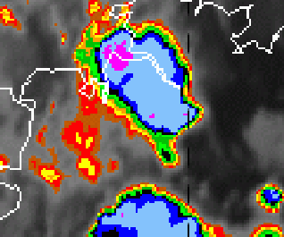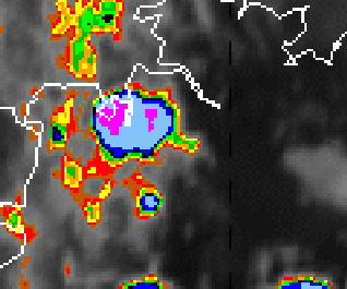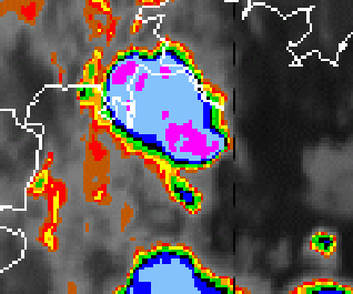 In this chapter some typical phenomena of convection and convective cells will be investigated using the Meteosat-8 IR 10.8 channel with a colour enhancement in the temperature range from -24 to -64°C (see IR Enhanced legend) or klick upon the key symbol (above). This helps us to interpret the information in the IR channel and will show more clearly following structures: