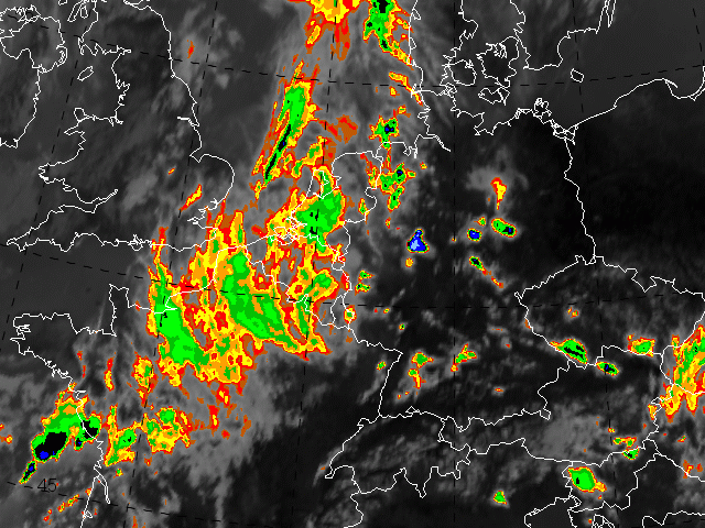 Satellite data enable us to study both the large-scale situation and the regional thunderstorm situation by the interpretation of cloud structures, cloud top temperatures (CTT), water vapour in the upper troposphere and channel combinations in various RGB composites. Important criteria, like character and intensity of the thunderstorm development become apparent in satellite images.