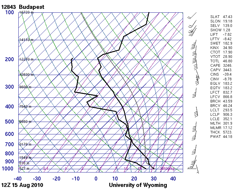 Figure 2.5: Radio Sounding Budapest - 15 August 2010 1200UTC (source: University of Wyoming)