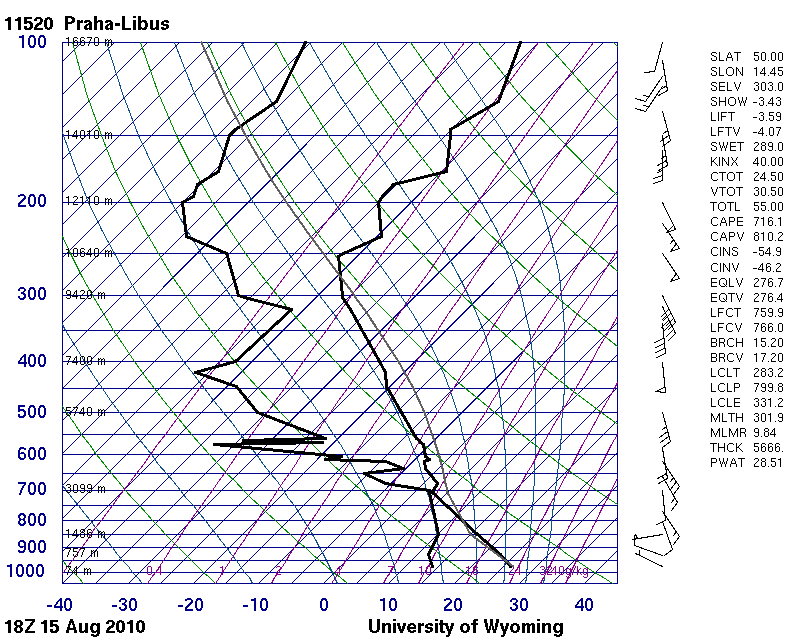 Figure 2.5: Radio Sounding Prague - 15 August 2010 1800UTC (source: University of Wyoming)