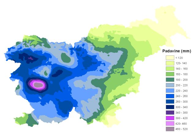 The highest amount of rain was registered in western Slovenia at the Otlica station (Fig 1.5) and was around 500 mm in 24 hours. At the Crni Lug-Risnjak weather station in the mountainous region in western Croatia, for example, 324 mm of rain was recorded between the 17th and 19th of September. The average amount of precipitation in the North Adriatic and Gorski kotar was between 100 and 200 mm, which is two times as much as the monthly mean value for this time of year. In the northwestern parts of Croatia the amount of rain was in the range of 100 and 150 mm, but the main problem was the water that came down the Sava River from the Alpine region.