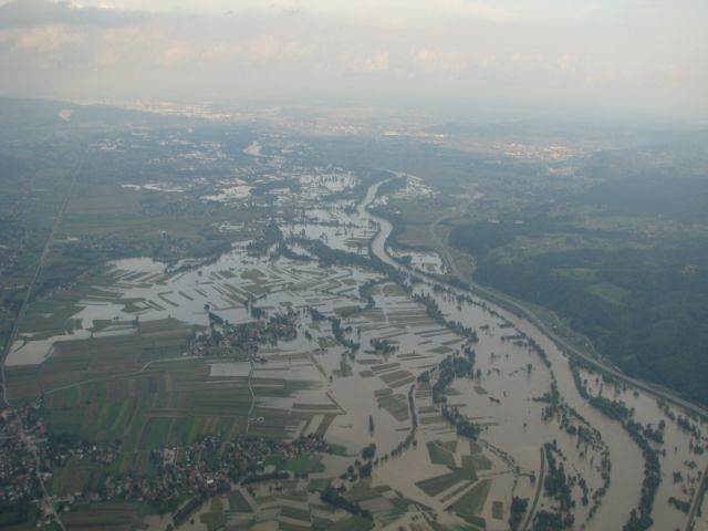 Figure 1.2: Floods in Slovenia in the south part of Ljubljana. Source ARSO.