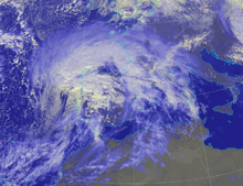 Xynthia, already in an occlusion phase, made landfall again, this time near Belle Île in France between 01:00 and 02:00 UTC on the 28th (see observations from the weather station Pointe du Talut in Figure 2.6.5). Table 2.6.1 summarizes the minimum MSLP values for this stage of Xynthia.