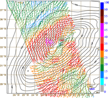 In the attempt to determine the centre, the "buoy estimate" and the "ASCAT estimates" (from both wind and surface pressure patterns) were not a perfect fit. However, there were clear benefits to using ASCAT patterns of both wind and surface pressure. Regarding wind speed and minimum pressure values, data from both buoy and ship were still used for "real-time tuning".