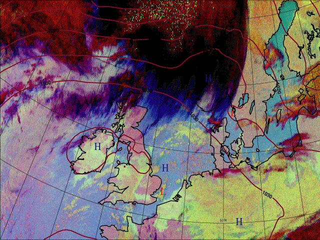 The surface pressure centre over the British Isles remained more or less stationary during the whole event.