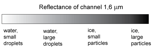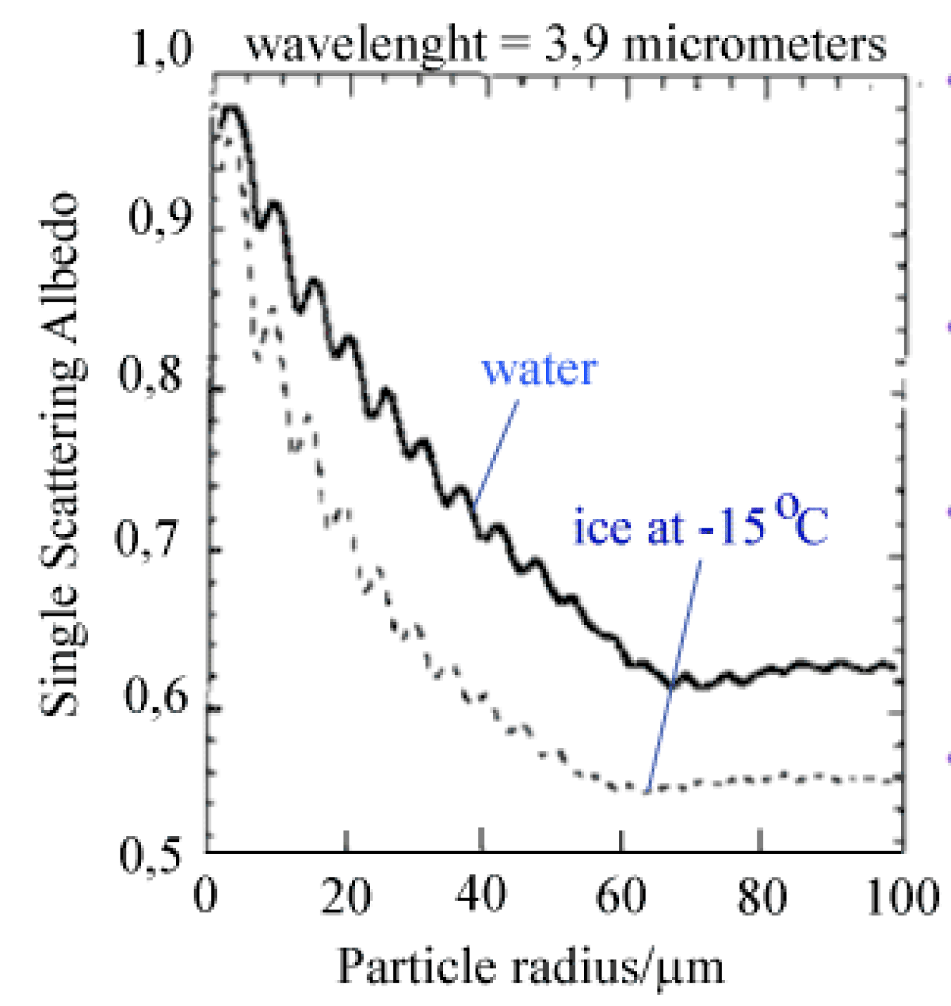 - Reflection at 3,9 μm is sensitive to cloud phase and very sensitive to particle size.