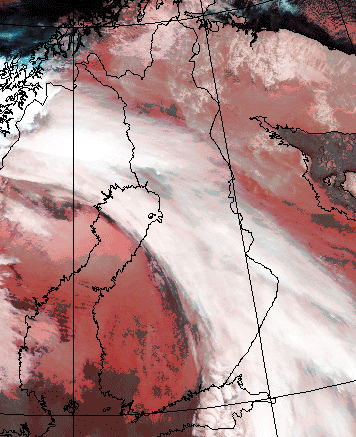 Fig. 6.1. AVHRR 345-combination on 7th January 2011 at 00.31 UTC.