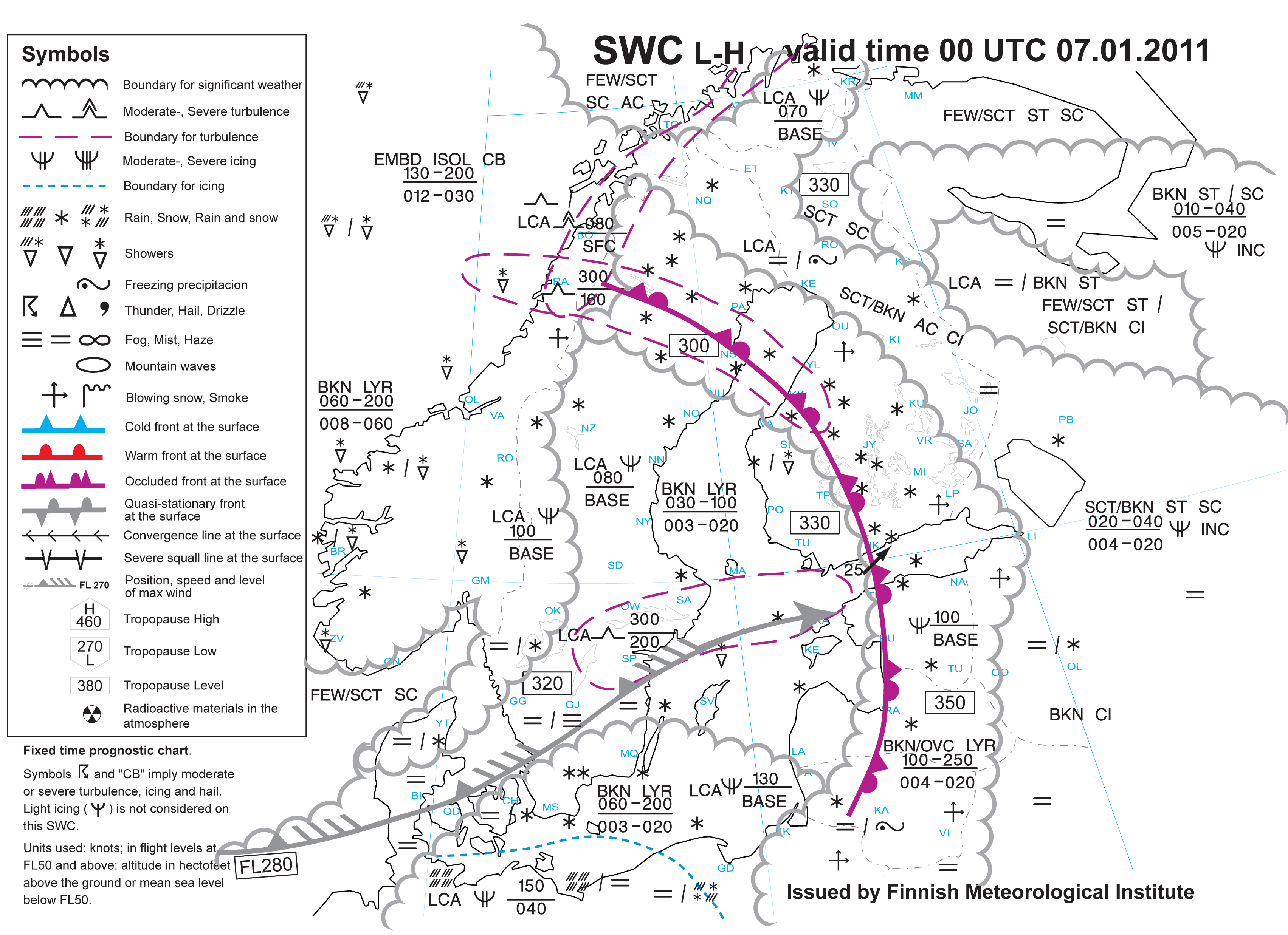 Fig. 6.2. Significant weather chart 7th January 2011 for 00 UTC.