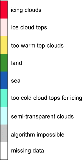 The most useful day and night Seviri product for detecting possible icing clouds is Microphysical. During daytime the most useful product is HRVFog.