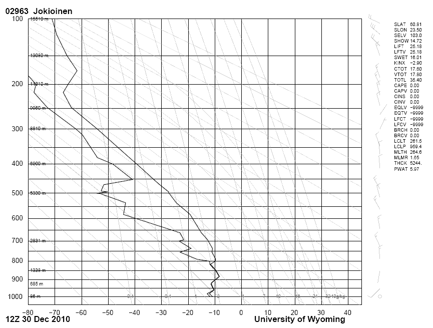 Fig. 5.12. Sounding from Jokioinen 30. Dec. 2010 at 12 UTC