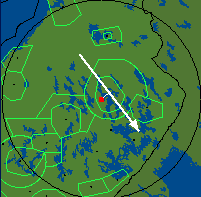Fig.5.9. CAPPI image 10 Nov 2010 at 05.20UTC from the Vimpeli radar, with colors as a function of radar echoes/dBz.