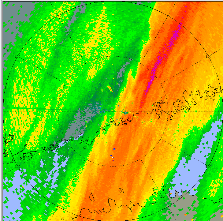 Freezing rain was observed in EFHA at 05.20 UTC. The CAPPI image shows strong echoes just north of it: