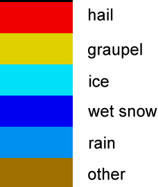 In the hydrometeor classification radar product it can be seen that there is wet snow within the cloud, in the same locations as the strongest CAPPI echoes: