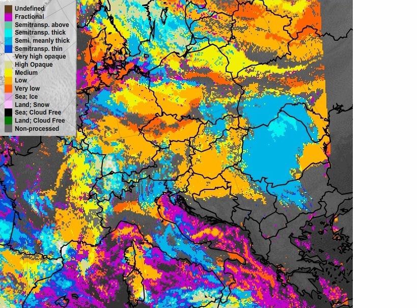 Information about cloud cover classification can also be obtained by observing the cloud type product (Fig. 5.2).