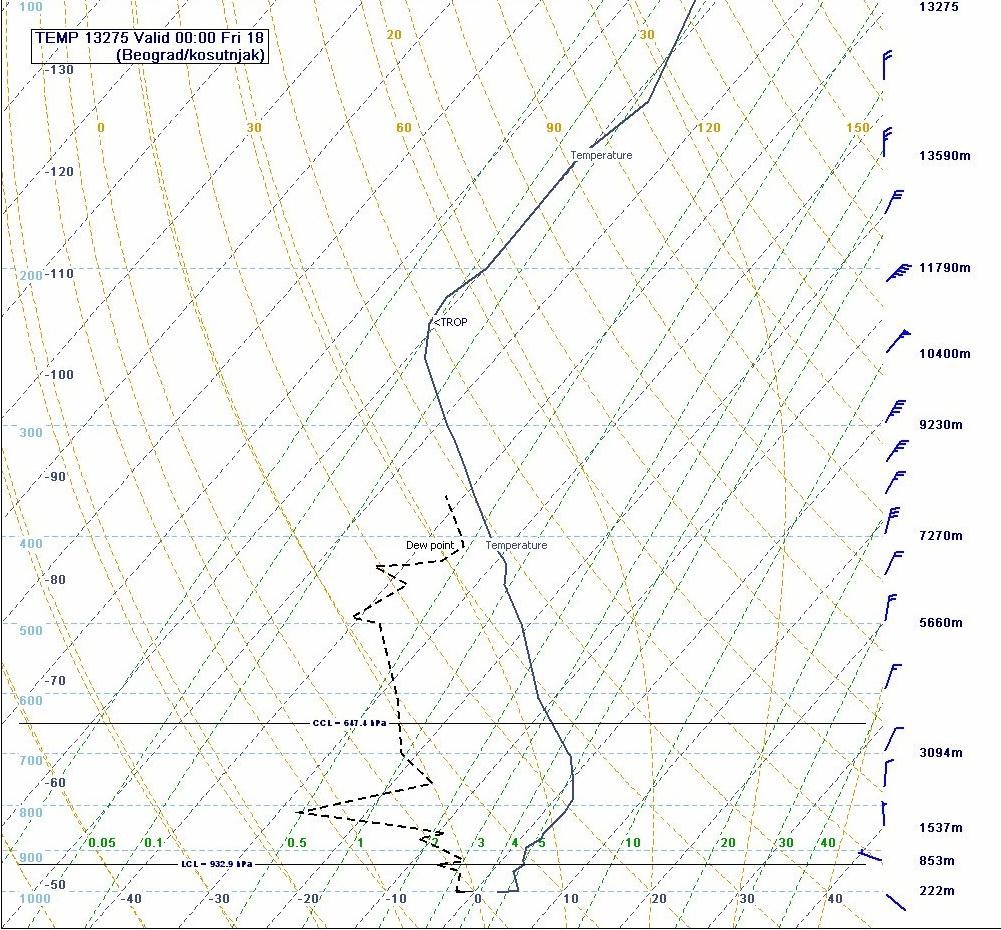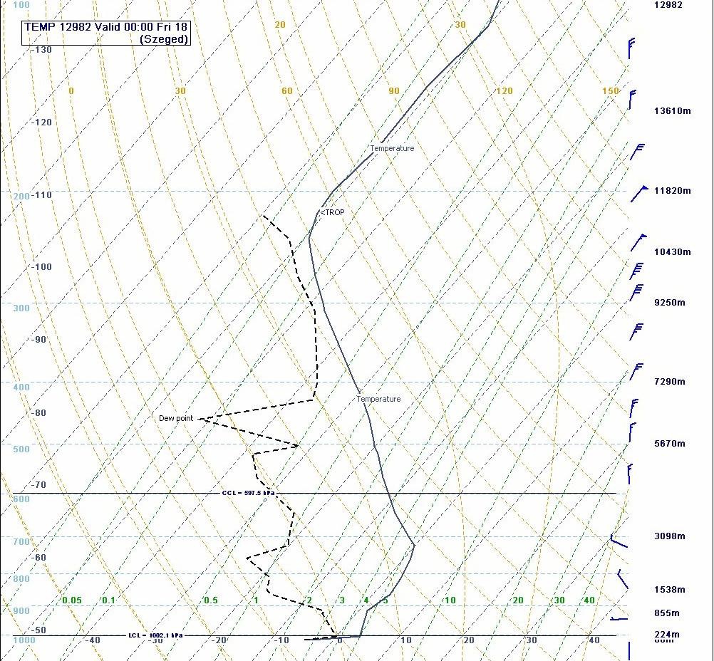 Fig. 2.2. 18th November, 2011 00 UTC sounding for Szeged (left) and Belgrade (right).