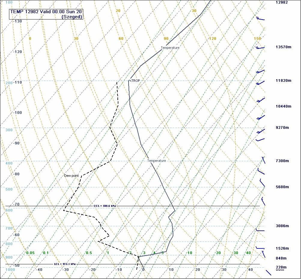 Fig. 2.4. 20th November, 2011 00 UTC sounding for Szeged (left) and Belgrade (right).