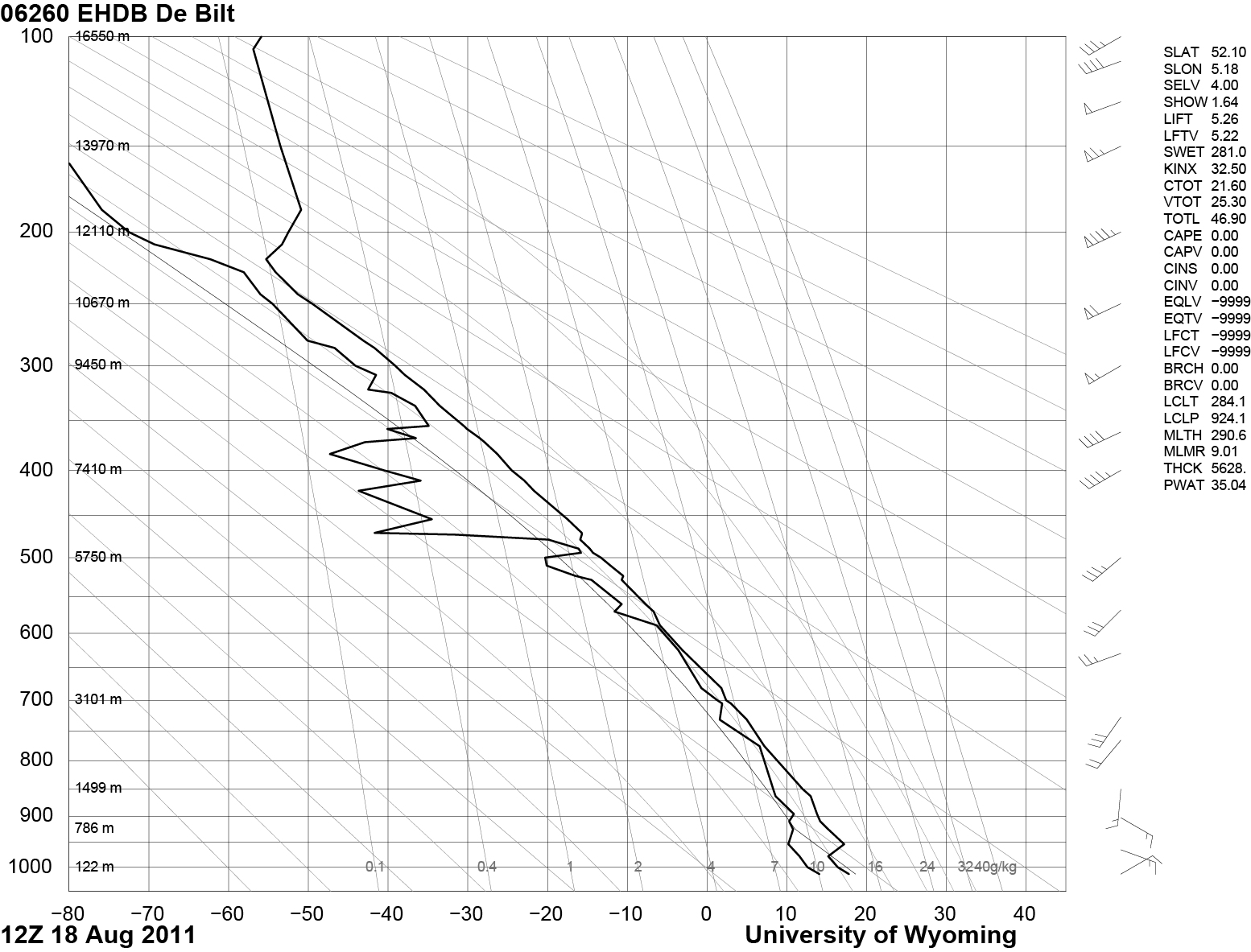 Fig. 5.4. Radiosonde measurement in de Bilt, the Netherlands at 12 UTC. Source: http://weather.uwyo.edu/upperair/sounding.html