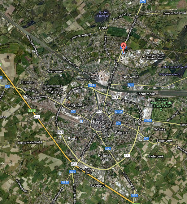 Fig. 1.4. Location of the Pukkelpop festival, Kiewit (indicated by letter "A") north from the city of Hasselt.