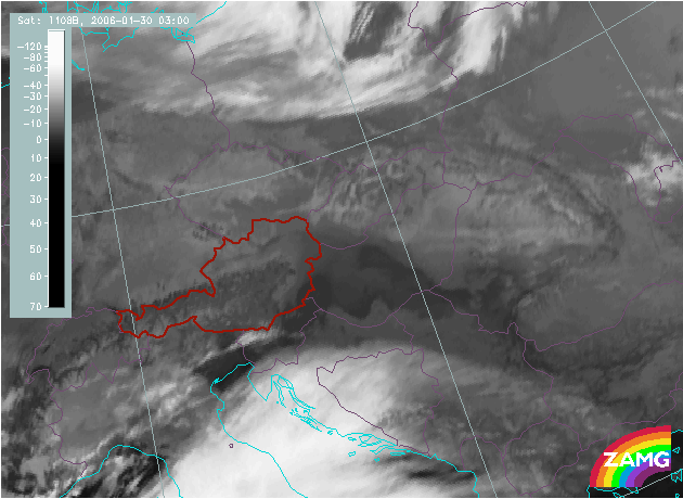 "With the two other examples - fronts and convective cells- we looked at IR image sequences only and could easily discriminate between cold and warm top clouds. Fog and Stratus is a warm top cloud system consequently with the basic IR images there are some problems during night to identify the fog areas exactly. It is clear that an appropriate channel combination will be necessary at least for the night hours. This is a bit different during the day hours, where High Resolution Visible images are an excellent source. But the topic of our exerceise here is a different: