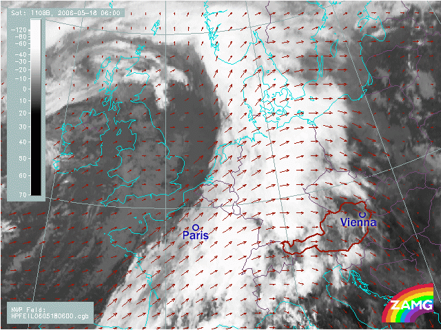 "Yes. For Vienna we estimated in our qualitative exercise from the image sequence between 00 and 03, that "Vienna will leave the cold front cloud band and move into the rear side till 06." From our quantitative Nowcast method we could clearly decide "at 04 that Vienna will leave the frontal cloud band at 06". In this case both methods were very close. But you are right: the quantitative computations were more exact and gave more confidence and security to the forecaster."