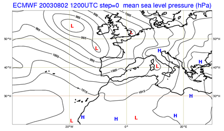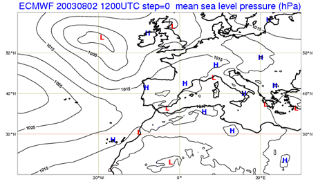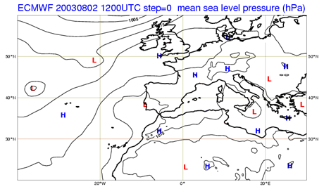 Fig 2.5 - Geopotential at 500 hPa. 2 August 2003 at 12 UTC