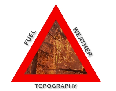 Fig 3.1 - Fire triangle. Fire hazards are influenced by fuel, weather and topography.