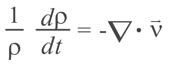 The term on the left-hand side represents the fractional rate of change of mass in a certain volume. The term on the right-hand side represents three-dimensional convergence or divergence.