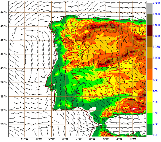 In chapter two we have already seen that temperature is an important meteorological parameter regarding forest fires. High temperature values near the surface, let´s say above 30ºC, promote fire spread, complementing the heat from combustion that results from a previous ignition. Other very obvious parameters are humidity and precipitation - fire and water are not exactly Romeo and Juliet.